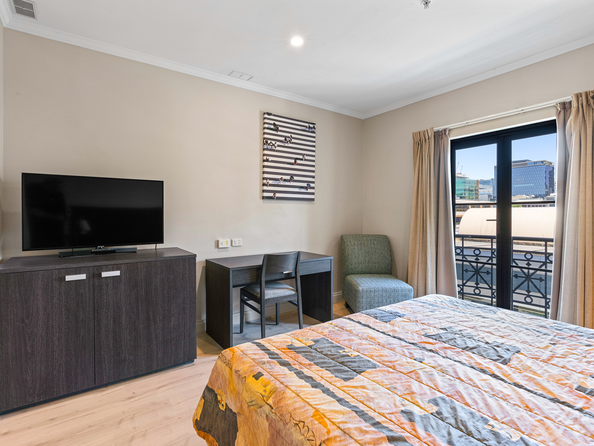 – 5 minutes walking to North Terrace trams (direct to Glenelg Beach!).
